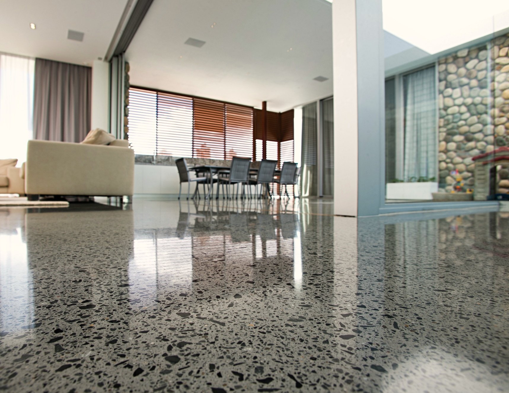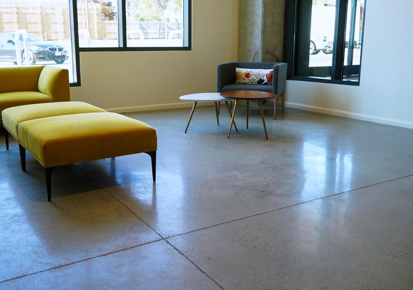 Stained concrete is remarkably easy to maintain. Basic upkeep requires little more than occasional sweeping and mopping to remove dirt and debris, allowing businesses to maintain a clean and appealing environment without significant effort.